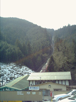 車庫入れを失敗しつつ、この写真にうつっているケーブルカーで頂上までいって飯でも食うか?というのんびりしたムードで麓にいってみるとケーブルカーは発車直後。次のケーブルカーは20分後と聞いて神経に異常を持つ三人組は待つことに耐え切れず、三人はつぶやいた…「足が…ある」。