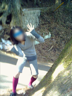 109番の杉の木を渋谷109と間違え、待ち合わせ相手を待つKIDS氏。(上図)