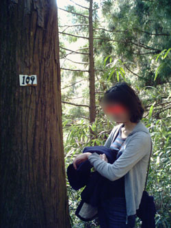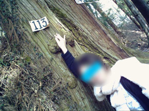 113番の杉の木から11月3日=伊武聖誕日を思い起こし奇妙な元気を見せた岸谷氏。(上図)